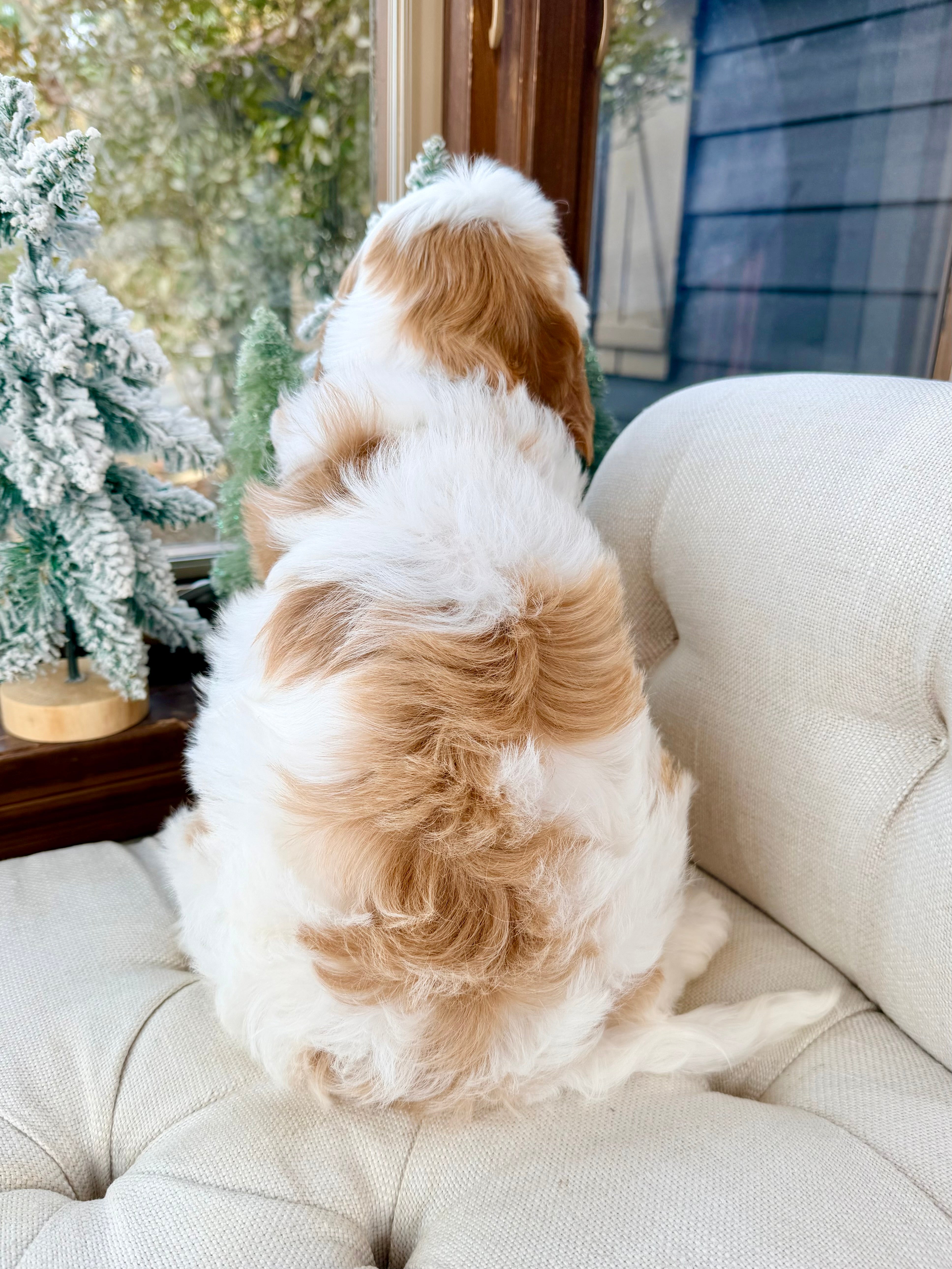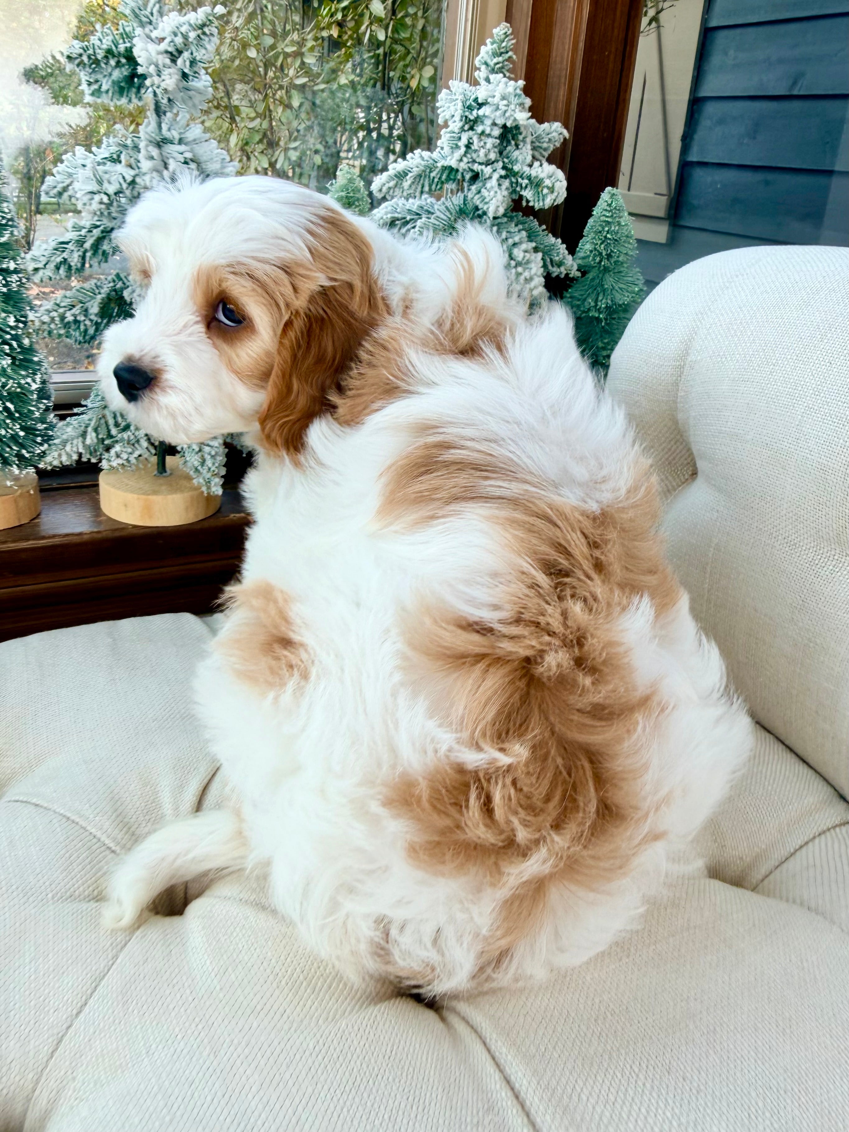 Bailey is 9 weeks old and 6.4 lbs, with a soft wavy Blenheim coat and an affectionate, gentle nature. He’s social, playful, and loves being around people.