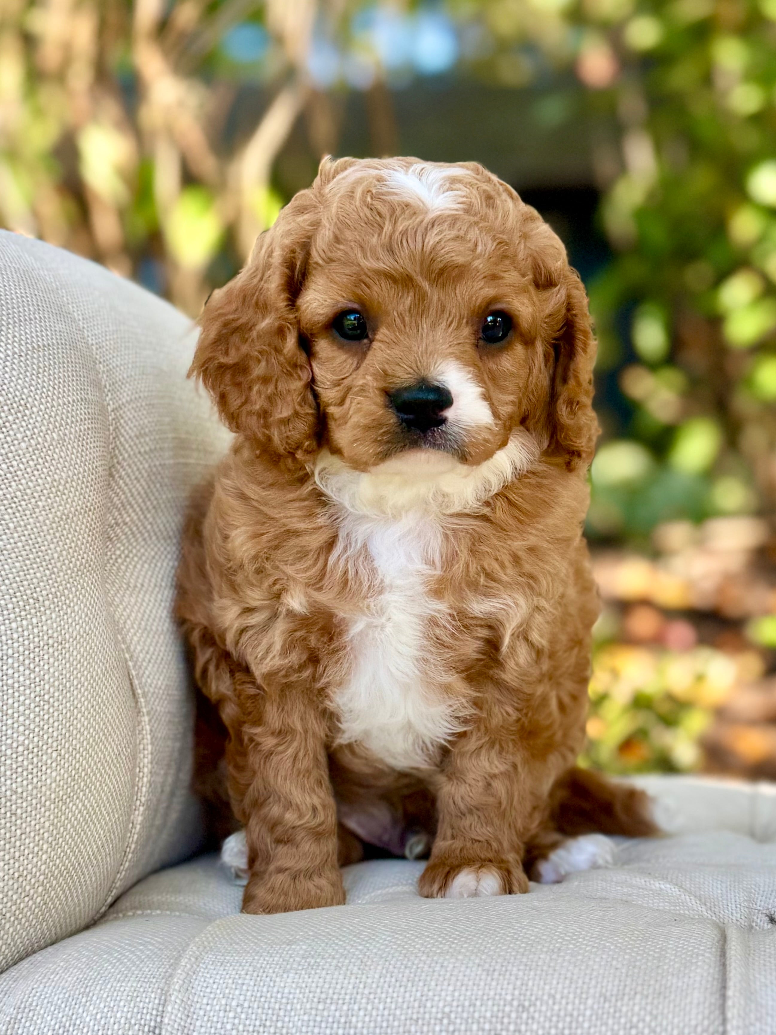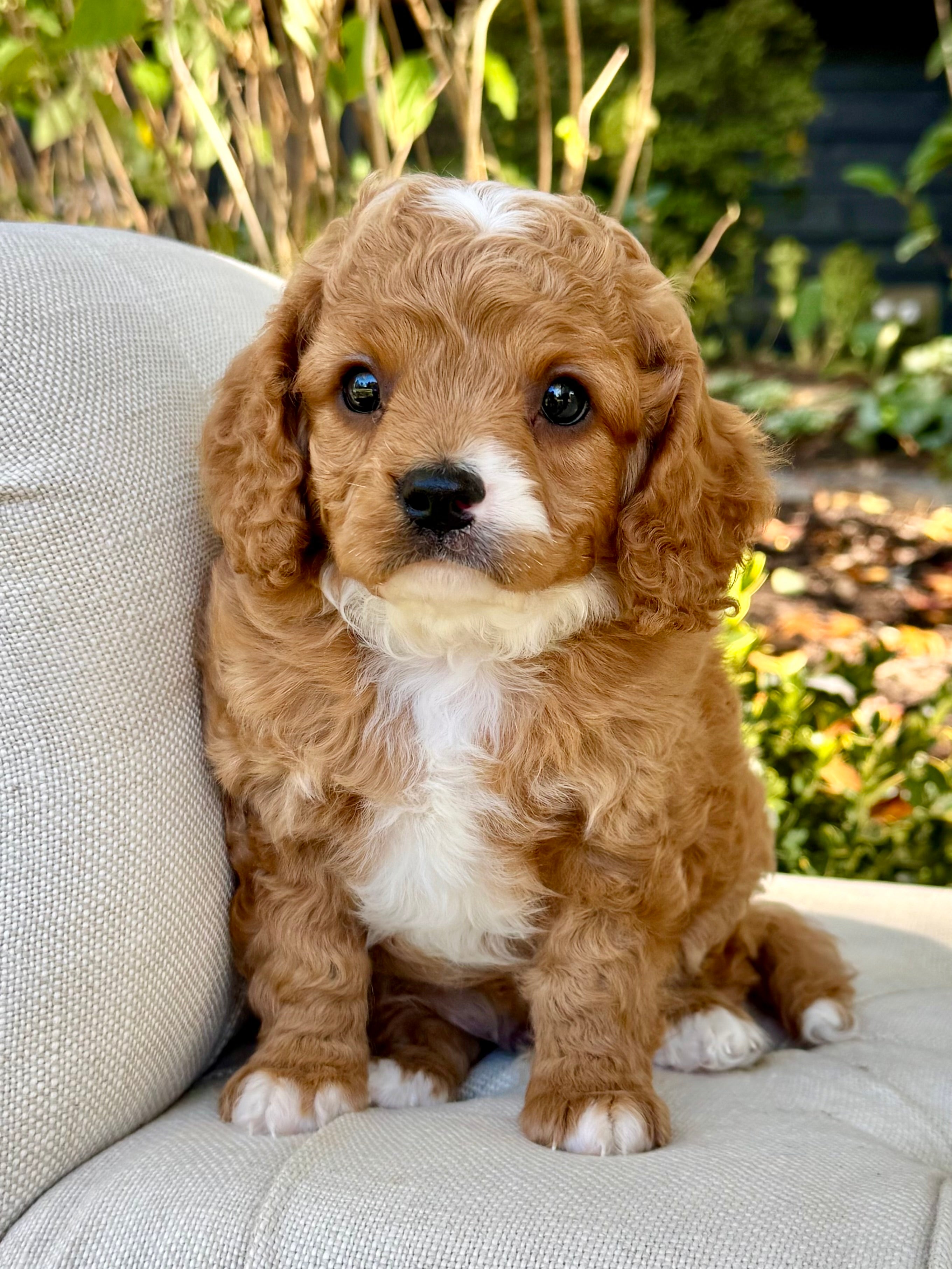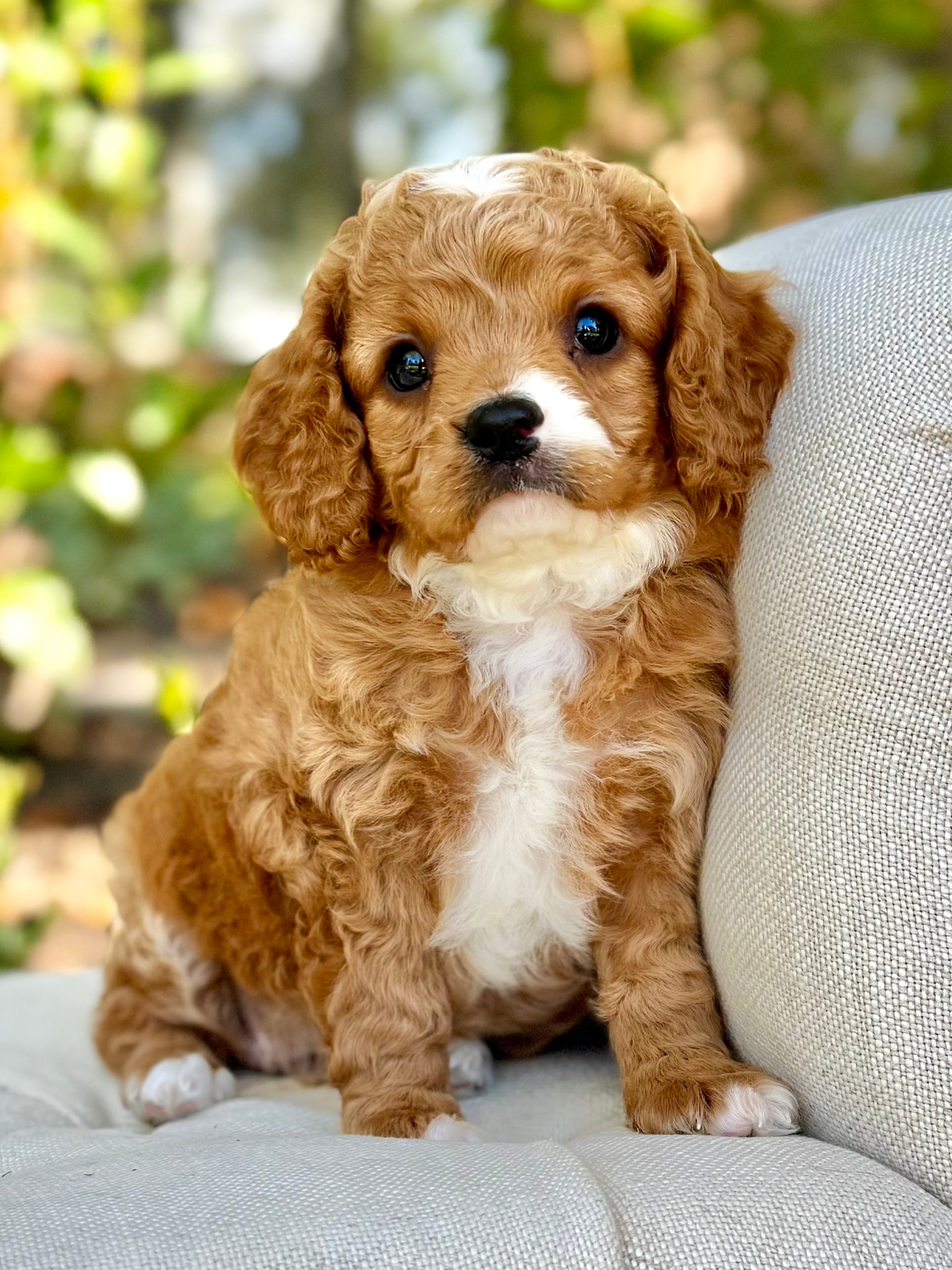 Cider is a 7-week-old Cavapoo with a soft, wavy apricot coat and warm, expressive eyes. Heโ€™s an affectionate, happy boy with a playful side who loves to explore and make you smile. Always ready for cuddles after a little adventure, Cider brings both energy and sweetness wherever he goes.