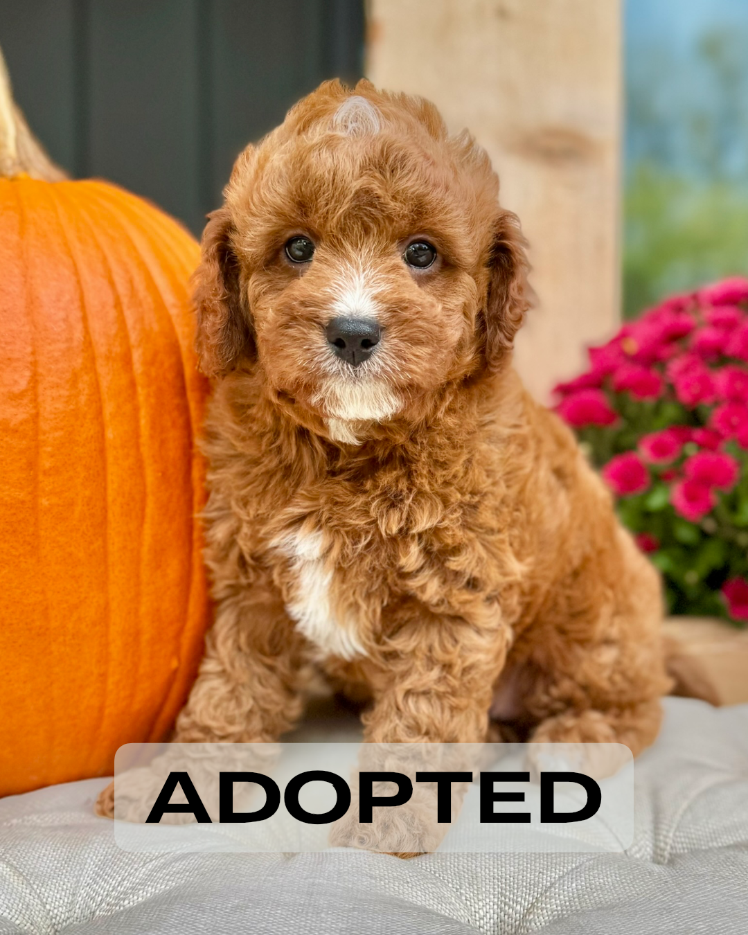 Silas is a 10-week-old F1b Cavapoo with a soft, red curly coat and a calm, affectionate personality. Heโs a happy little boy who enjoys exploring his surroundings but is always content to settle in for cuddles. Born on August 19th and currently weighing 5.8 lbs, Silas is expected to be 12โ18 lbs full grown. His mom, Rose, is a 16 lb Poodle and his dad, Ollie is a 10 lb Cavapooโboth genetically health tested to ensure strong, healthy puppies.ย
