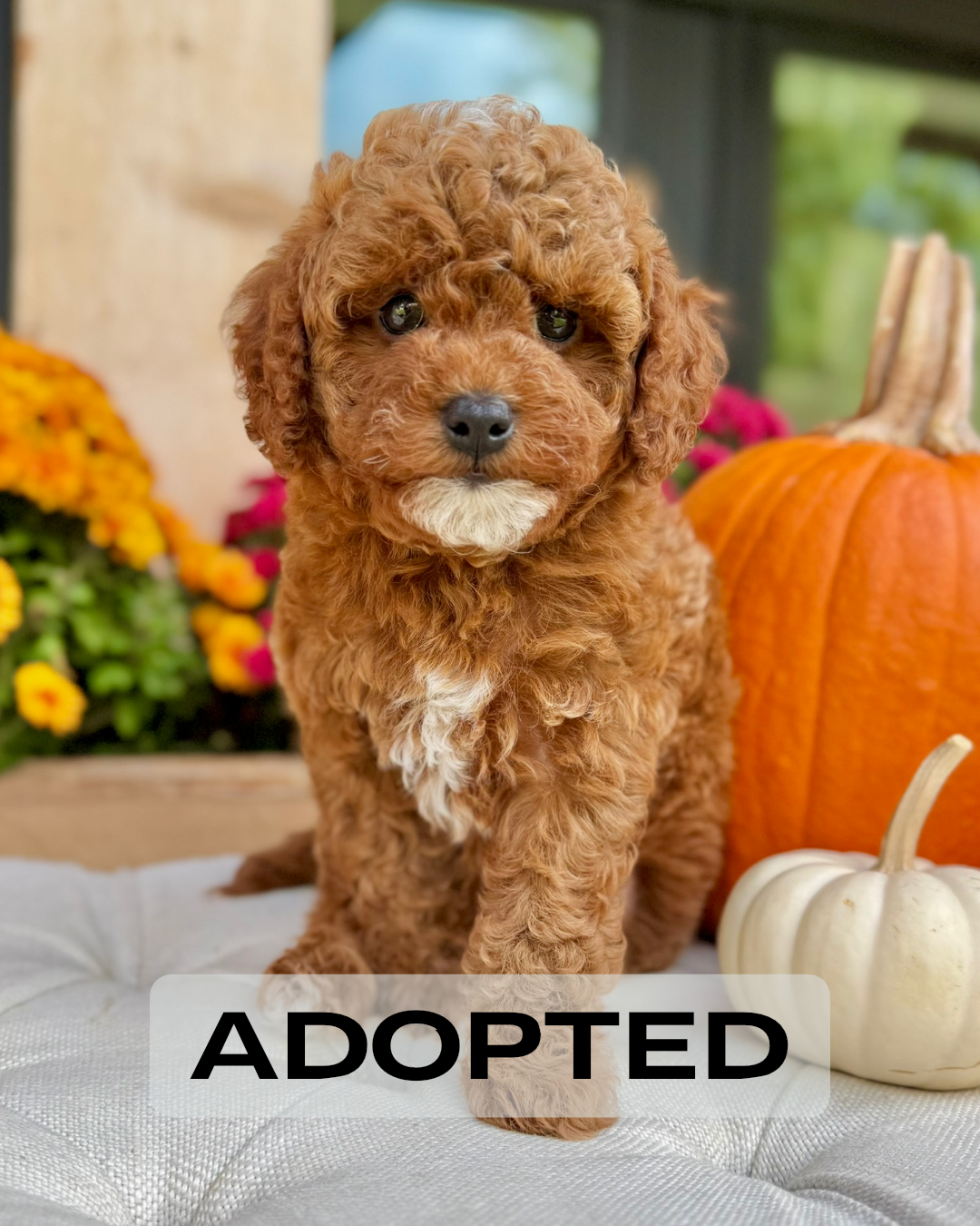 Maren is a 10-week-old F1b Cavapoo with a soft, red curly coat and a calm, affectionate personality. Sheโs a happy little girl who enjoys exploring her surroundings but is always content to settle in for cuddles. Born on August 19th and currently weighing 4.5 lbs, Maren is expected to be 8โ14 lbs full grown. Her mom, Rose, is a 16 lb Poodle and her dad, Ollie, is a 10 lb Cavapooโboth genetically health tested to ensure strong, healthy puppies.ย