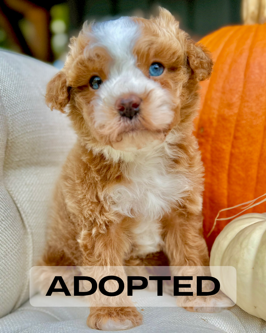 Beck is a 10-week-old F1b Cavapoo with a soft, red curly coat and a calm, affectionate personality. Heโ€™s a happy little boy who enjoys exploring his surroundings but is always content to settle in for cuddles. Born on August 19th and currently weighing 3.24 lbs, Beck is expected to be 6-10 lbs full grown. His mom, Rose, is a 16 lb Poodle and his dad, Ollie is a 10 lb Cavapooโ€”both genetically health tested to ensure strong, healthy puppies.ย